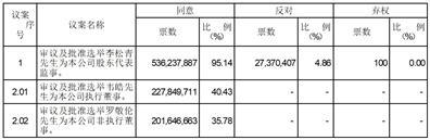 本次股东大会所审议的议案均为普通决议案,其中:第1项议案为非累积投票议案,已获得出席股东大会的股东或授权代理人所持有效表决权股份总数二分之一以上的赞成票通过;第2.01、2.02项议案为累积投票议案,所有候选人均已获得出席股东大会的股东或授权代理人所持有效表决权股份总数二分之一以上的得票数当选。