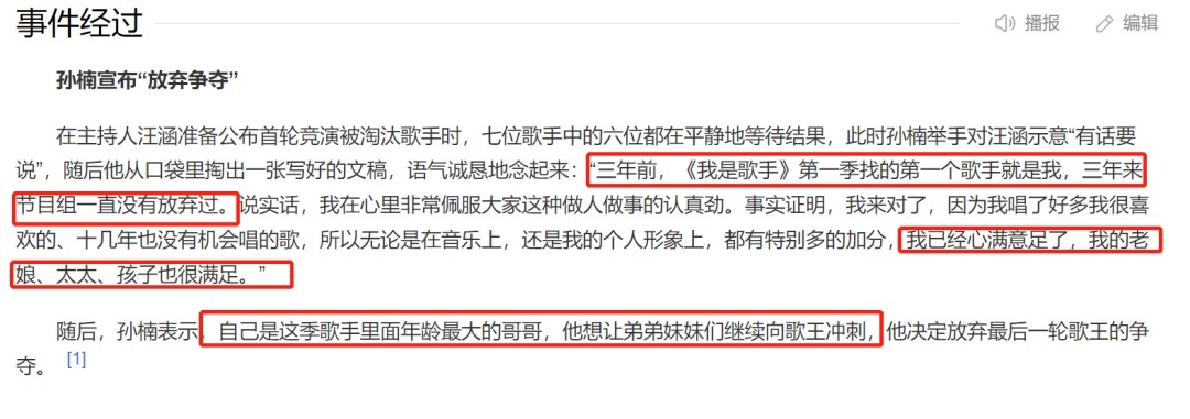 孙楠宣布:放弃下一轮的竞演,让其余六位歌手都进入第二轮角逐,全场哗然。